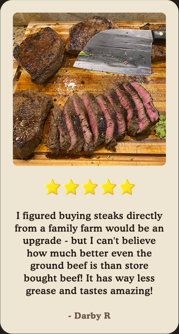 Imagine sitting at a dinner table with your family eating delicious steaks, tacos, chili or other dishes made with premium quality, rich and flavor-filled meat - and having full confidence in knowing your feeding loved ones with healthy, pure farm-grown protein from the Heartland.